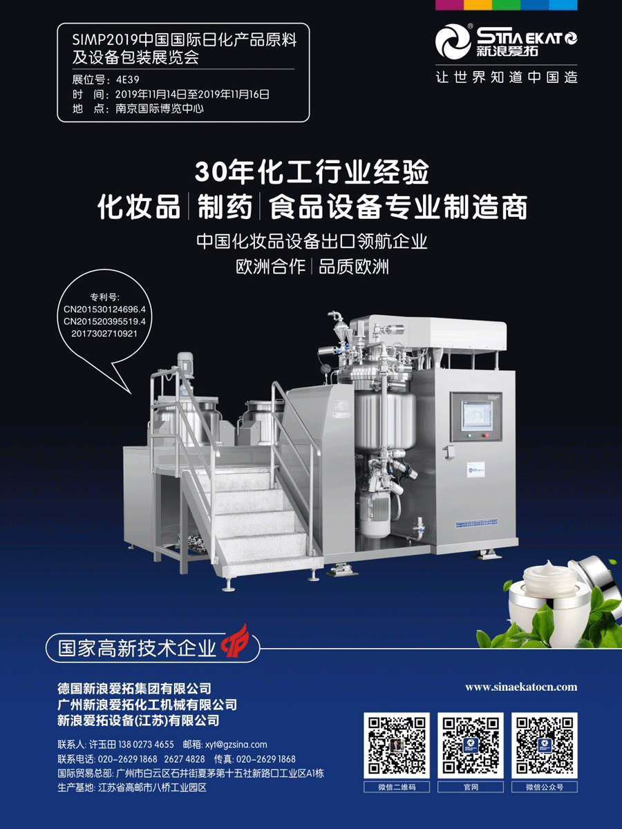 Guangzhou Sina Alto Chemical Machinery Co., Ltd. was founded in 1990. It is a professional manufacturer of various cosmetics machinery and equipment with sina Alto equipment (Jiangsu) Co., Ltd. as a solid backing, German national organization design center and National Light Industry Daily Chemical Research Institute as the support, senior engineer and other experts as the technical core.